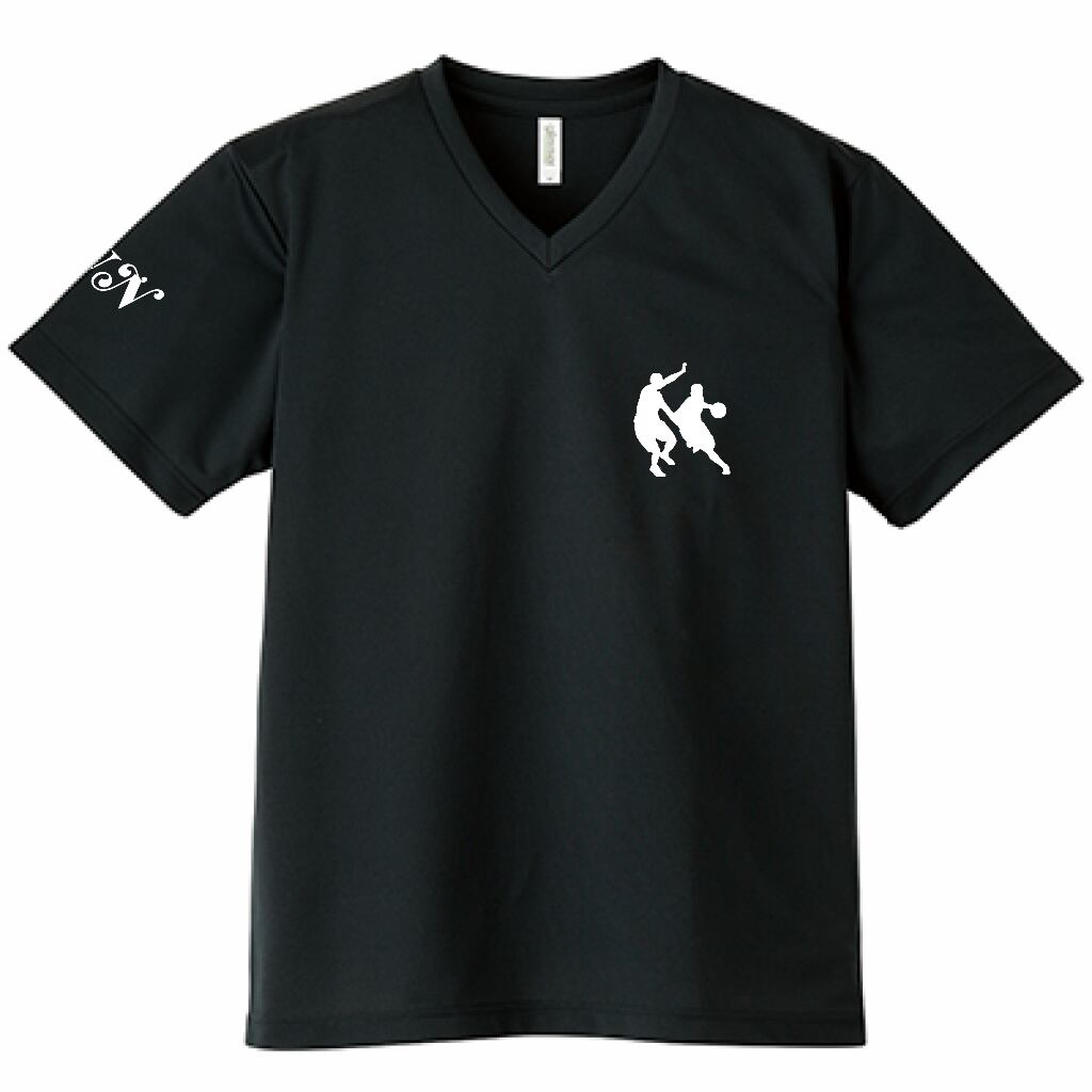 ハートでプレイ ドライVネックTシャツ(ブラックⅹホワイト)