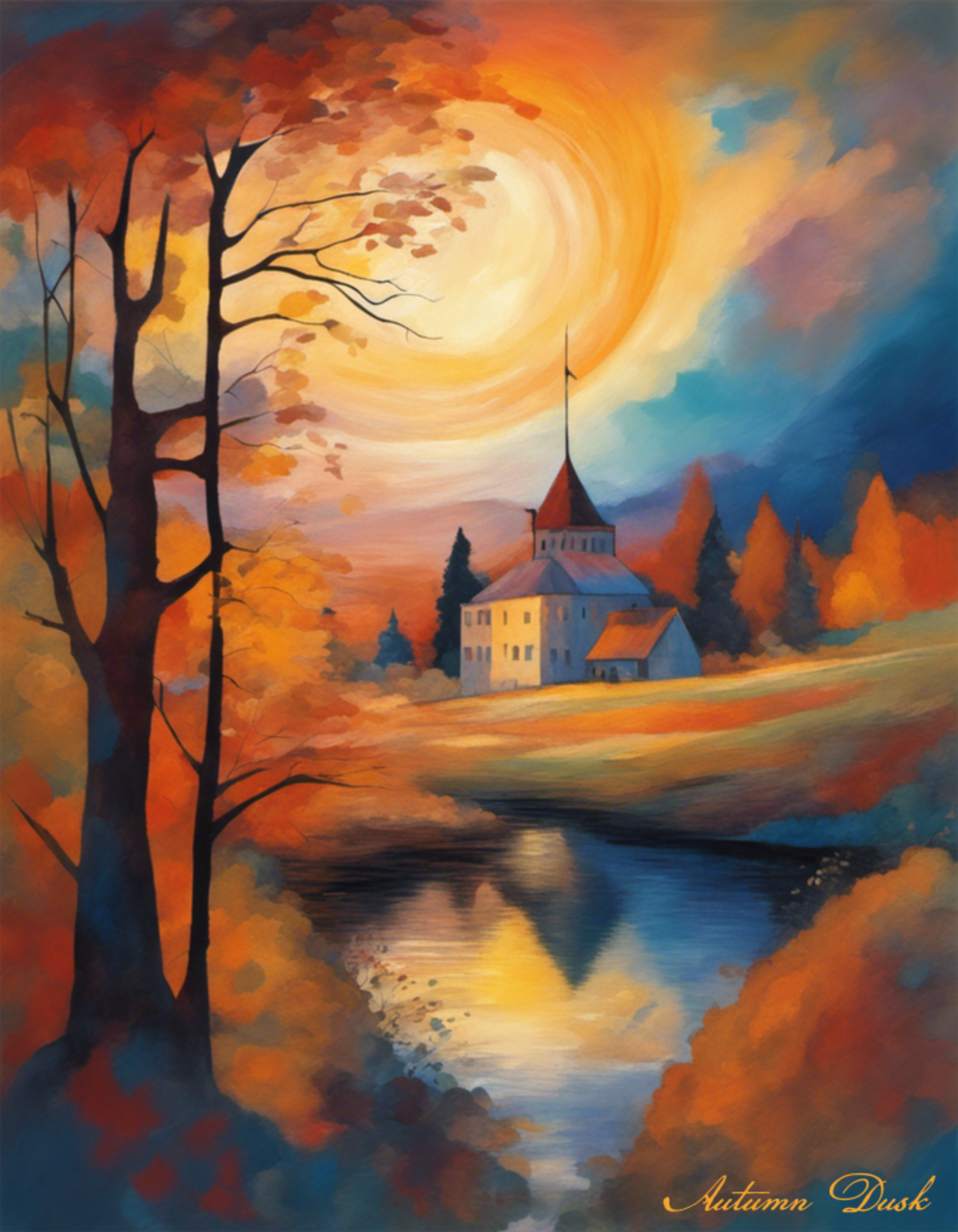美しい秋の夕暮れをテーマにしたイラストが描かれたTシャツです。