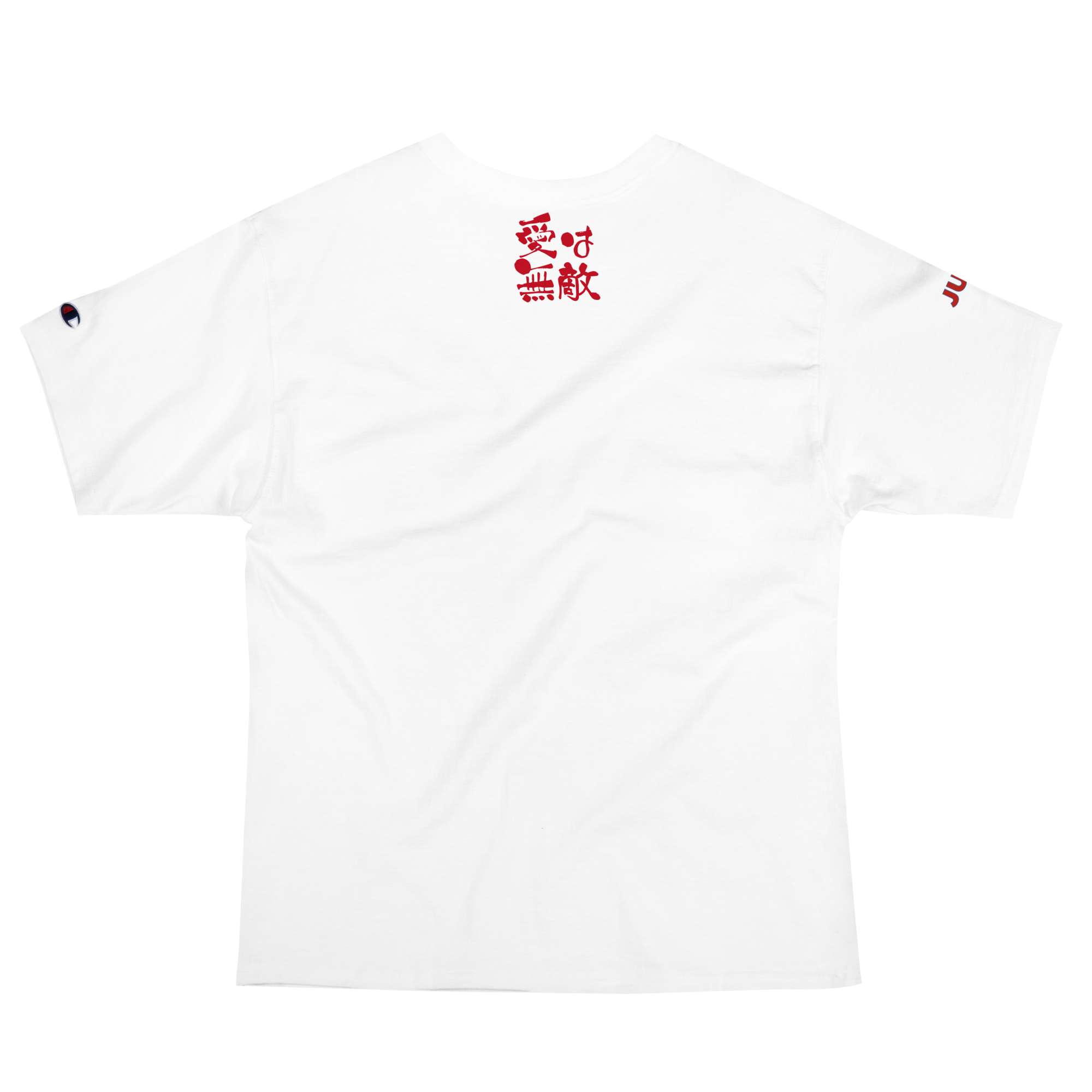 愛は無敵 01 メンズ Champion Tシャツは、人気ブランドChampionとJUN SHOPのコラボレーションTシャツです。それぞれのブランドの特徴が融合された、特別な一枚です。