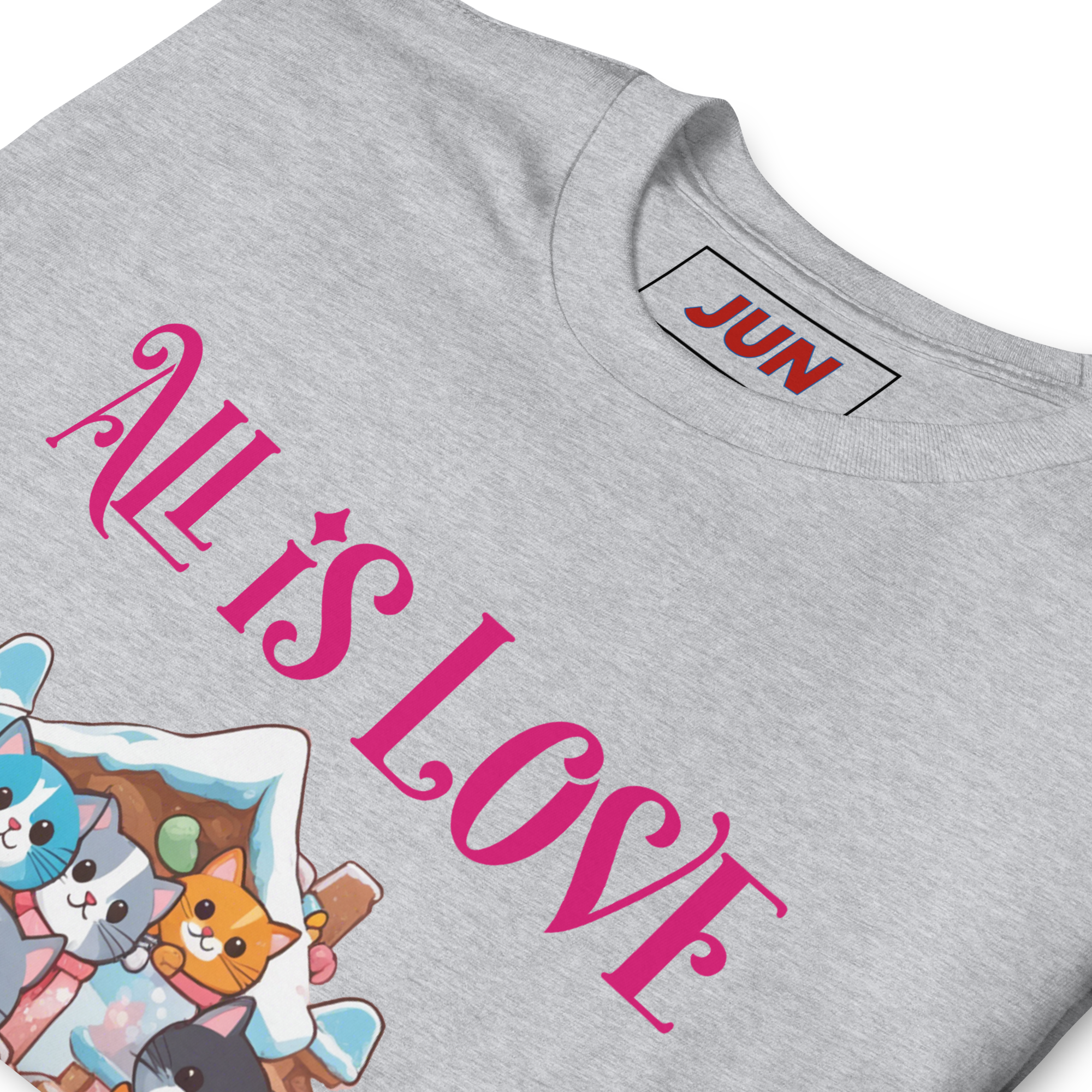 宇宙も今この瞬間もすべては愛を象徴する、Baby Kittenたちの可愛いイラストをあしらったユニセックスTシャツが登場しました。All is Love(すべては愛)というメッセージロゴが、あなたの日常にポジティブなエネルギーを届けます。