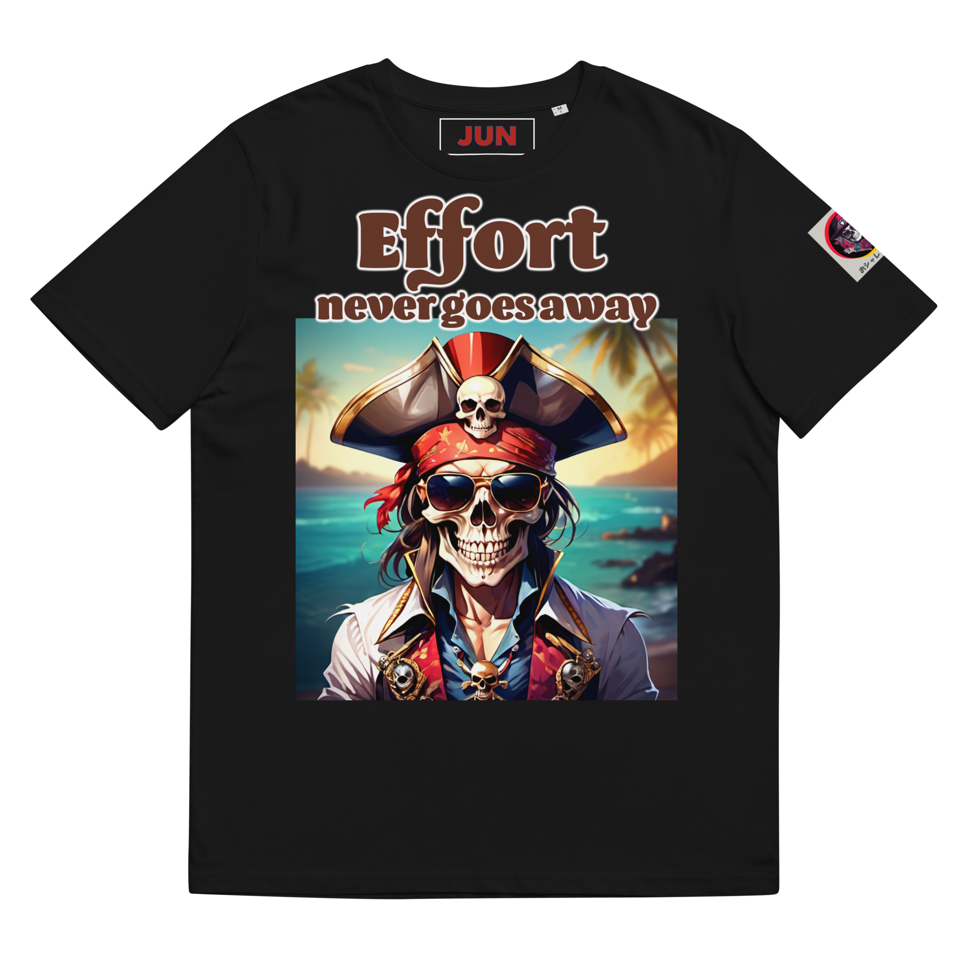 「おシャレコウベ Effort never goes away 01」は、お洒落なシャレコウベのイラストと「Effort never goes away(努力は決して消えない)」のロゴデザインが特徴のユニセックスTシャツです。オーガニックコットン素材で肌にやさしく、着心地も抜群。カジュアルなデザインながらも、メッセージ性を持ち、周囲にポジティブなメッセージを発信できる一枚です。ストリートスタイルやカジュアルコーデにぴったりなアイテムです。