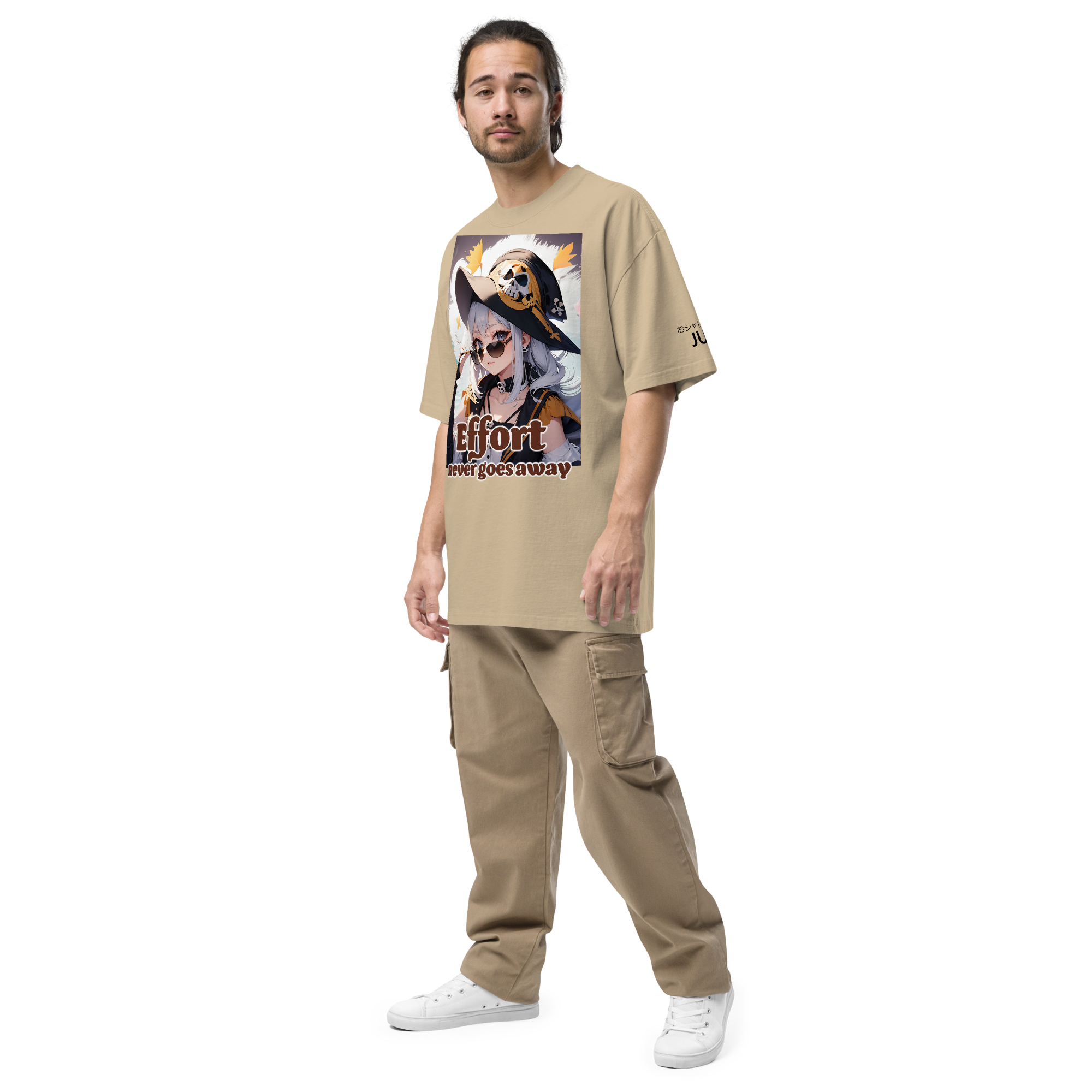オーバーサイズでゆったりとした着心地のおシャレコウベTシャツ。お洒落なシャレコウベのイラストと力強いメッセージが胸元にプリントされています。「Effort never goes away(努力が消えることはない)」というロゴ文字が、あなたに力強いサポートを送ってくれます。