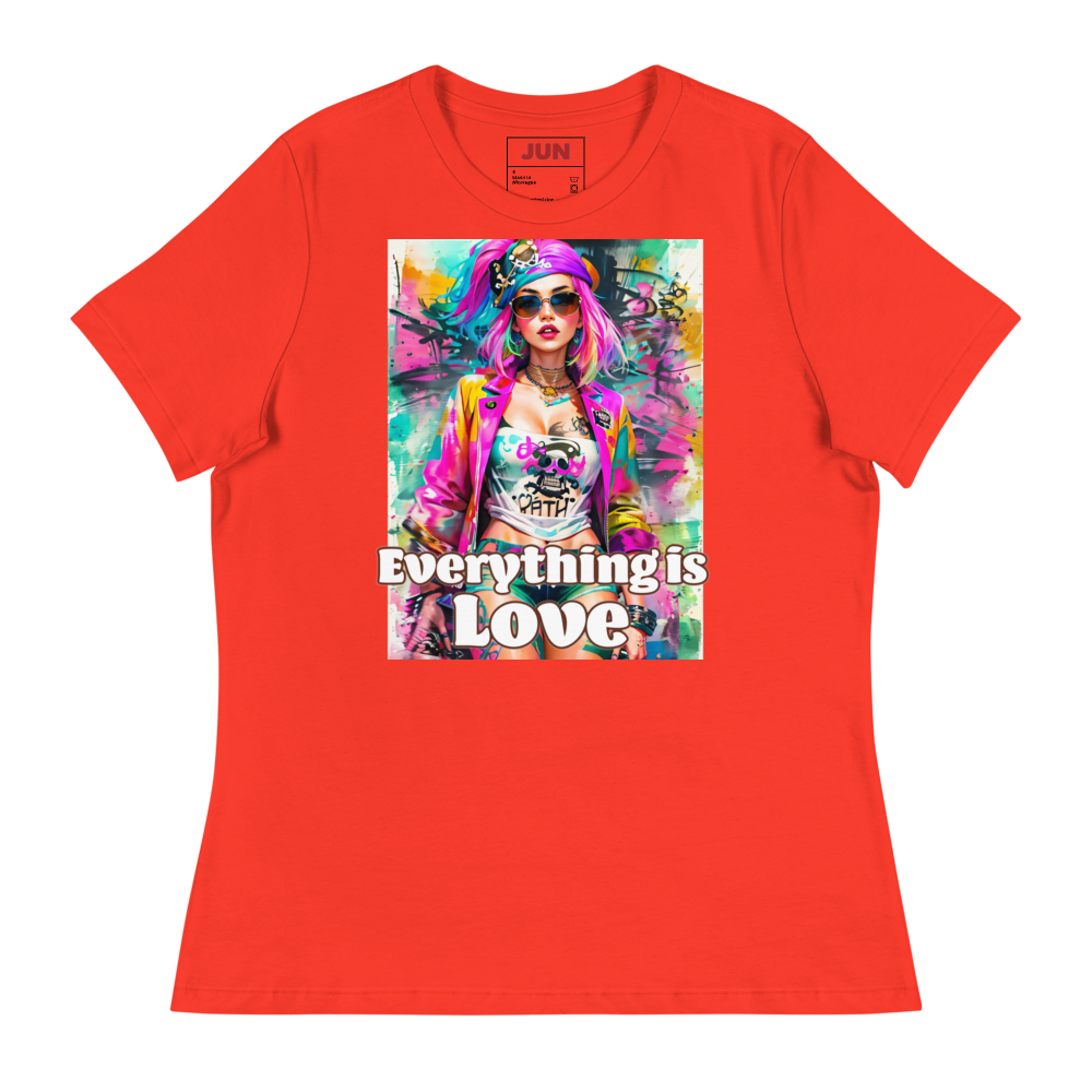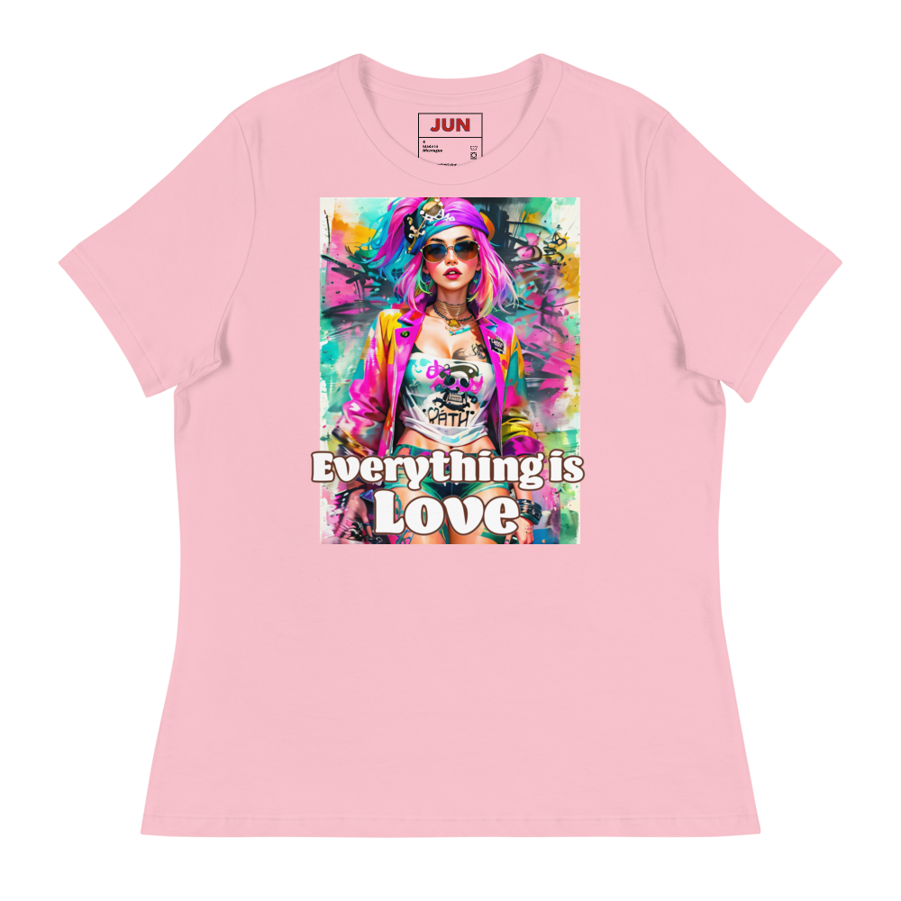 カラフルかわいいイラストが印象的な「Everything is Love 03 レディース リラックスTシャツ」。ストリート系少女のデザインと"Everything is Love"のメッセージが、心を温かく包みます。リラックスしたい日にはもちろん、元気を出したい日にもぴったりの一枚です。柔らかな生地とゆったりしたシルエットで、着心地も抜群。お気に入りのデニムやショートパンツと合わせて、自分らしくスタイリングしてみてください。