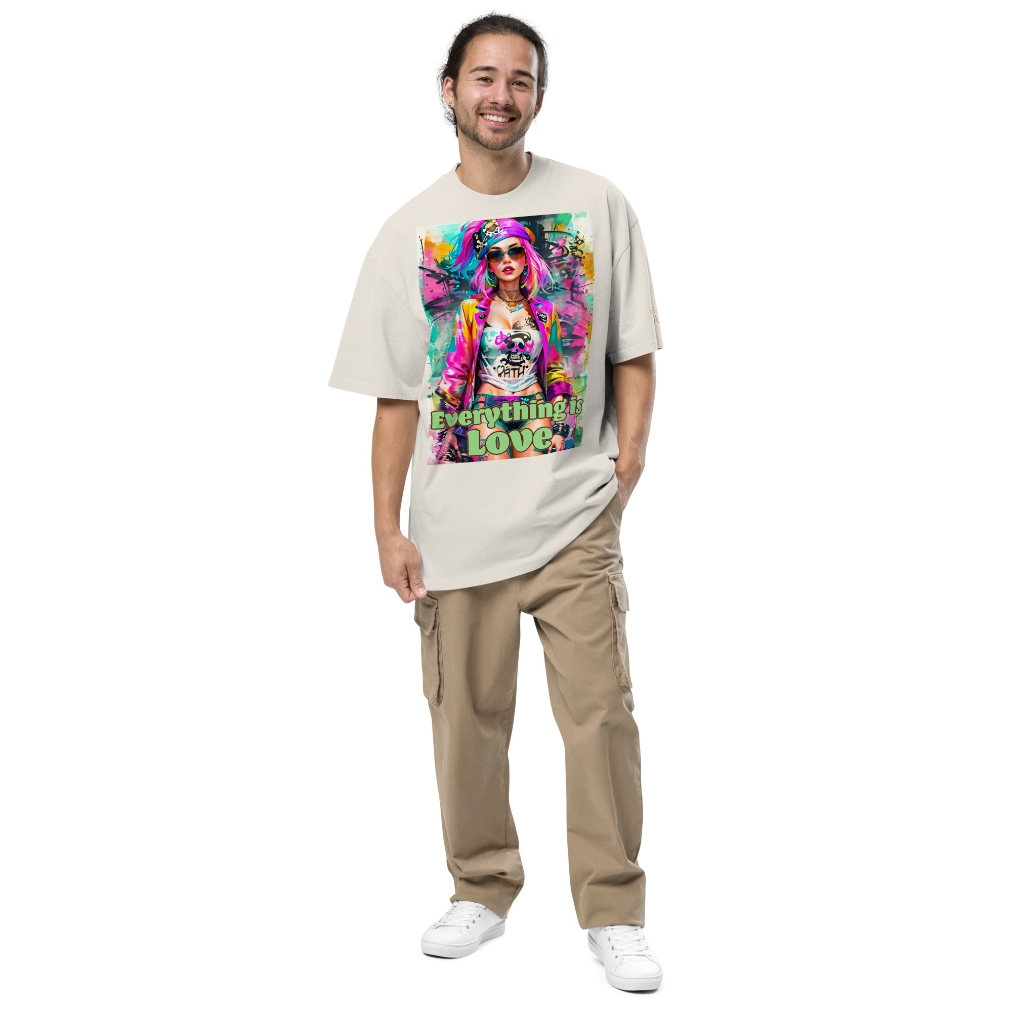 "Everything is Love"のメッセージが込められたこのTシャツは、着る人にポジティブなエネルギーを与えてくれること間違いなし。オーバーサイズのシルエットで、ゆったりとした着心地も心地よいポイントです。
