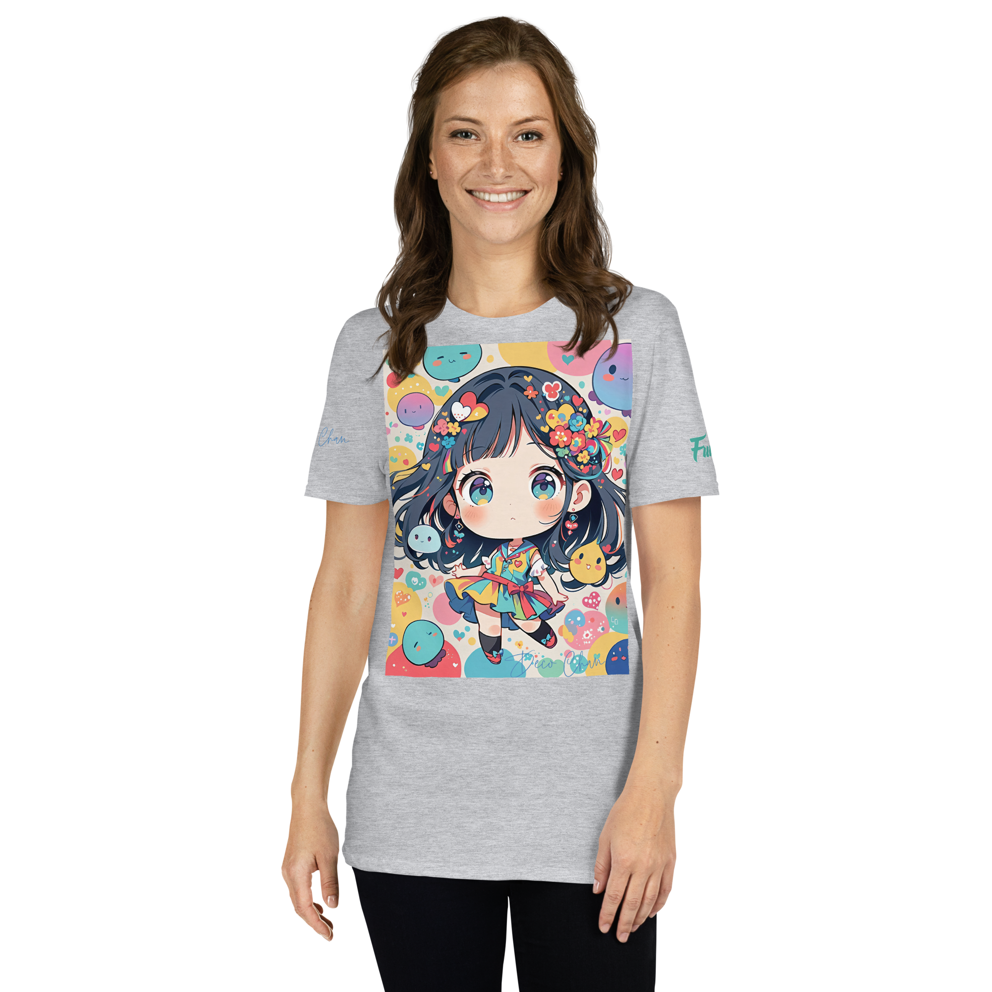 Deco chan 02半袖ユニセックスTシャツは、可愛らしいイラストデザインで人気急上昇中のアイテムです。どんなコーディネートにも合わせやすいシンプルな半袖Tシャツなので、幅広い年齢層や性別の方におすすめです。Deco chanのイラストは、愛らしさ満点で周りの人々をホッとさせること間違いなし!デイリーコーデにプラスするだけで、一気に可愛さUP間違いなしです。